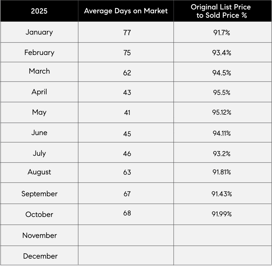 Homes closed at an average of 91.99% of their original list price in October. This metric, coupled with widespread price cuts, signals a continued shift in negotiating power. Buyer leverage is significant—they can negotiate on price, repairs, and closing costs, especially for homes that are "sitting" on the market. For sellers, overpricing is the quickest way to garner lower offers; presentation, flexibility, and sharp pricing are now essential for a successful outcome.