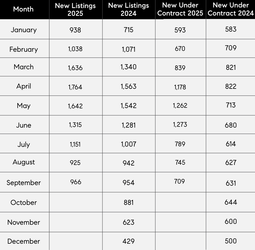 - While September 2025 saw a stronger year-over-year performance in closed sales and new under contracts, the general downward slope of the late-year seasonality is expected to moderate activity levels.